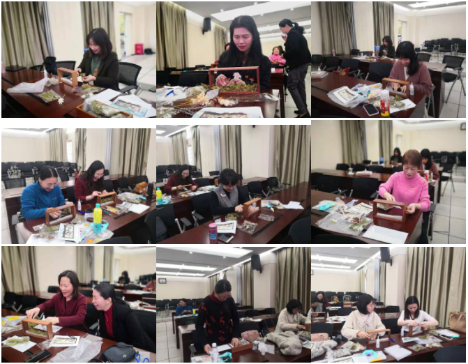 在“三八”国际妇女节来临之际,为营造健康、和谐、积极向上的节日氛围,进一步提升学院教职工集体荣誉感、幸福感,学院组织全院女教职工开展了“手作永生花相框”的活动。活动中,女教师们相互协助,头脑风暴,创作出一幅幅精美的相框作品。通过本次活动,丰富了教师们精神生活,加强了情感交流,增加了团体的凝聚力、向心力,激发大家以饱满的热情投入到新学期工作中。