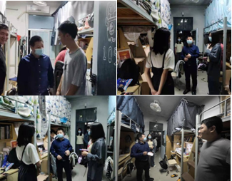 张本钰副书记一行在宿舍大厅检查疫情防控情况,走进学生宿舍对部分同学的近况进行了细致的了解,询问学生在疫情防控期间的需求。走访过程中,张本钰副书记询问了同学们的学习近况,特别是毕业班同学的就业求职和毕业论文提交情况。与此同时,他还向同学们反复强调了勤洗手、戴口罩、少网购、不点外卖等注意事项,对全体同学疫情期间的自我防护提出了要求。