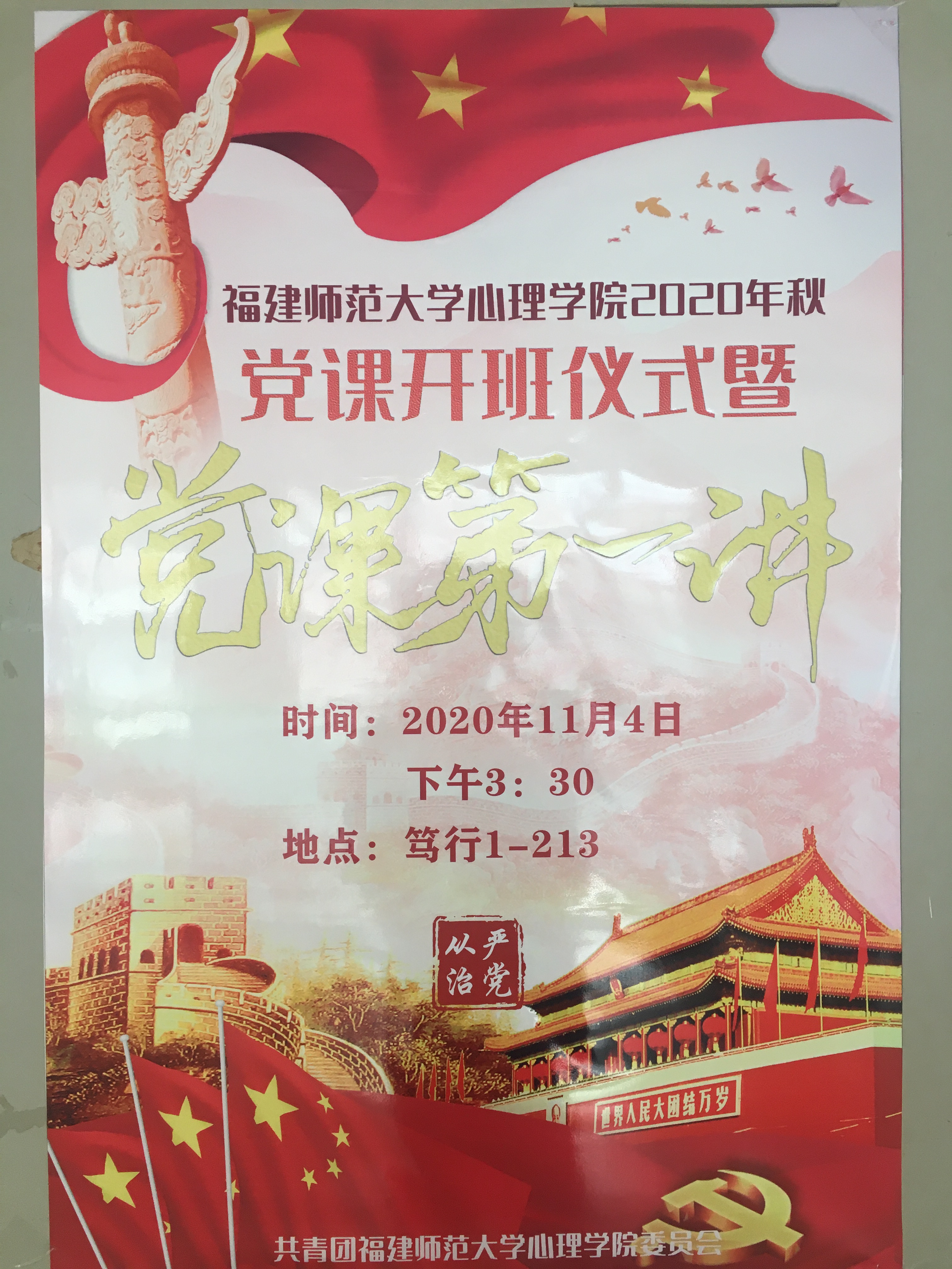 11月4日下午,我院于笃行1-213教室开展2020年秋季党课开班仪式。本次活动由我院团委书记谢小芬老师主持,我院党委书记张承东、党委副书记张本钰、党委办公室陈芳老师,各年级辅导员及党课学员共同参与了此次活动。