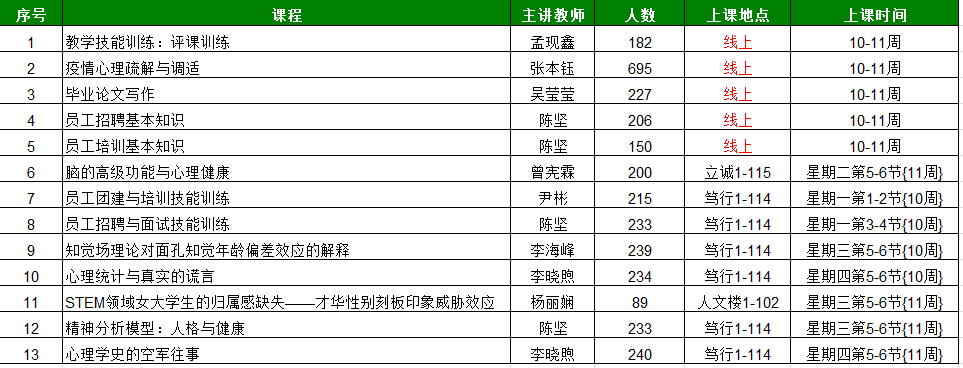 心理学院2020-2021学年个性化培养周活动安排表