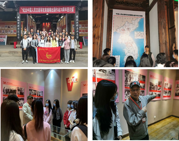 该地举办了“致敬最可爱的人——纪念中国人民志愿军抗美援朝出国作战70周年展览”。本次展览以抗美援朝战争的全过程为主线,全方位、多角度、深层次地展示了抗美援朝战争的艰辛历程、伟大成就和时代意义,缓缓铺开一幅波澜壮阔的历史画卷。首先,支部成员们依次参观了“抗美援朝整体的战略决策”、“冰雪长津湖”、“地下长城”、“钢铁运输线”、“粉碎细菌战”、“鲜血凝成的战斗友谊”、“伟大的抗美援朝精神”这七大版块,与在场的老同志们热切交流感悟与想法。其次,在这次展览中,王宁峰讲解员为支部成员们讲述抗美援朝战役,追忆往昔峥嵘岁月,并主要回答了两个问题,分别是我们为什么要抗美援朝和我们为什么要纪念抗美援朝战役。此外,讲解员还向成员们介绍了抗美援朝英雄黄继光、邱少云和杨根思,与成员们重温可歌可泣的英雄事迹。此次展览和王宁峰讲解员的认真讲述让大家回顾了抗美援朝战争的光辉历程和宝贵经验,看到了中国人民志愿军将士的英雄气概和不畏强敌的战斗精神和舍生忘死、浴血奋战的革命精神。最后,支部成员们和讲解员拍照留念,并用热烈的掌声表达了对讲解员的感谢,此次的团日活动圆满结束。