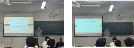 此次支部会议由团支书刘欣雨主持,主要向大家介绍了本支部今年团立项活动的相关安排,对前期已开展的相关子活动进行了总结。班会上团支书播放了《国家发展》视频,视频向我们展示了71年来我国的发展历程,提高了支部成员的民族自豪感;随后团支书借助习近平总书记在十九大开幕式上的一段话:“要加强社会心理服务体系建设,培育自尊自信、理性平和、积极向上的社会心态”,提出我们如何借助心理学专业的相关知识将“我之发展”与“国之发展”结合起来,引导大家深入思考“我能为国家做什么”这一问题。此外,班会从“大学生要关注自身”的观点出发,结合两个实际案例,提出大学生人际交往问题的解决力度还不够的问题,并共同决定将此作为我们之后团立项活动的方向。
