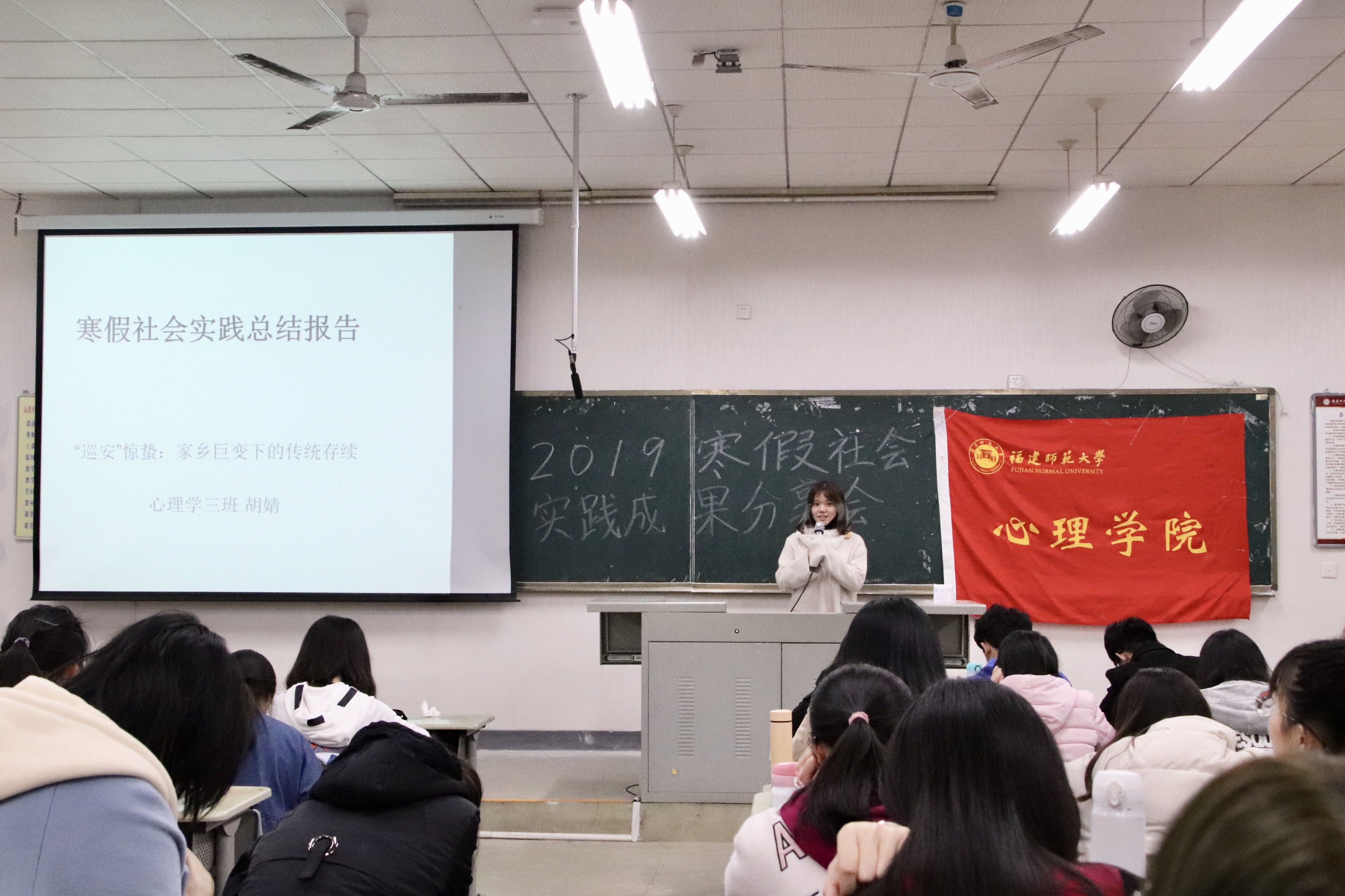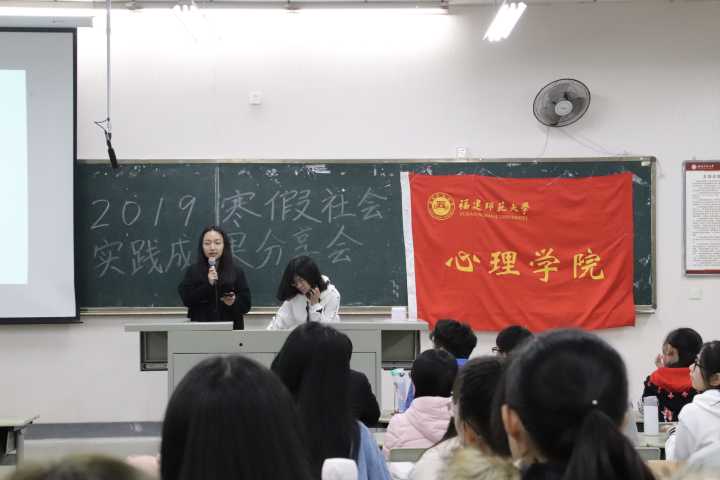 3月10号晚上,心理学院2019年寒假社会实践成果分享会在旗山校区知明1-107举行。此次分享会邀请先进团队及个人进行寒假社会实践成果汇报展示。